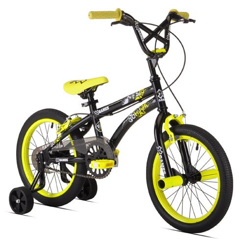 Your kid will experience the fun and excitement of learning to ride on this BMX bike by X-Games with removable training wheels. This bike has wide wheels for stability, hand and coaster brakes and a quick-release seat.